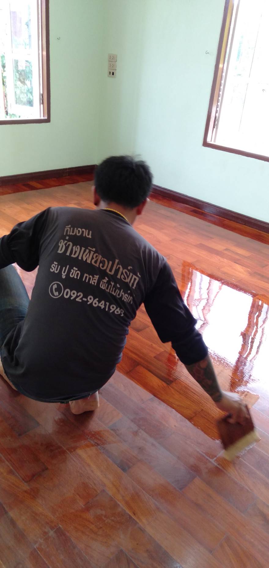 - ขัดพื้นไม้ ทาพื้นไม้ ทายูรีเทน