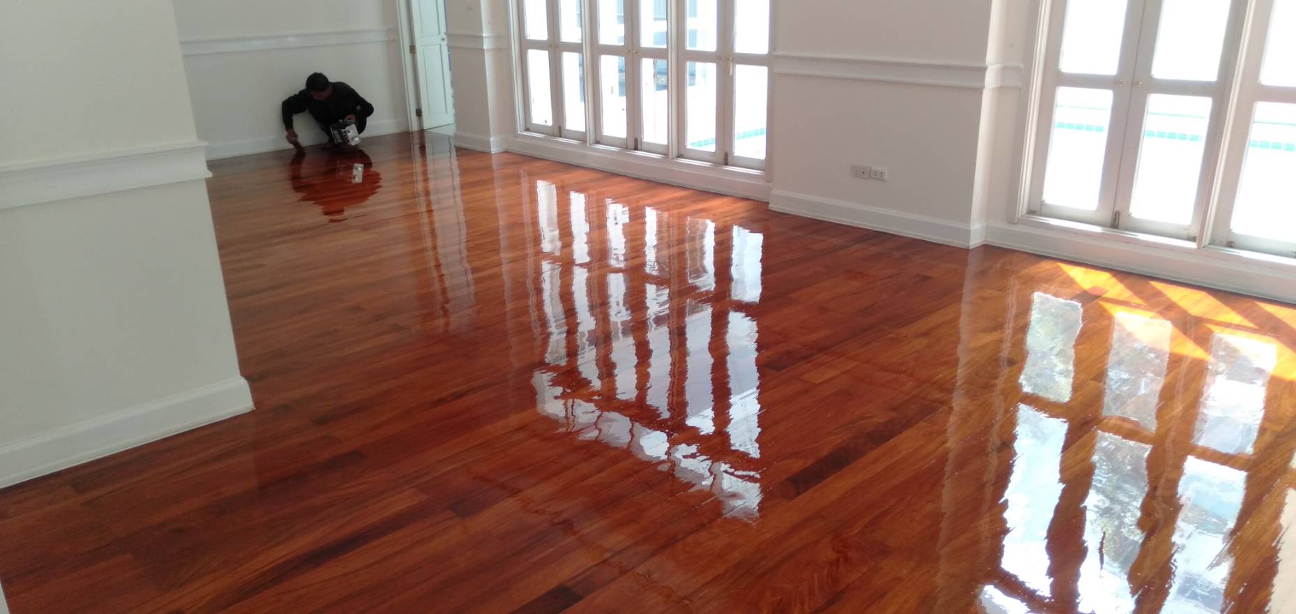 รับปูปาร์เก้ ขัดพื้นไม้ ทาสี ลงน้ำยายูริเทนเคลือบเงาพื้นไม้ รับติดตั้งบัวฝ้า ติดตั้งราวลูกกรงไม้ บัวพื้น